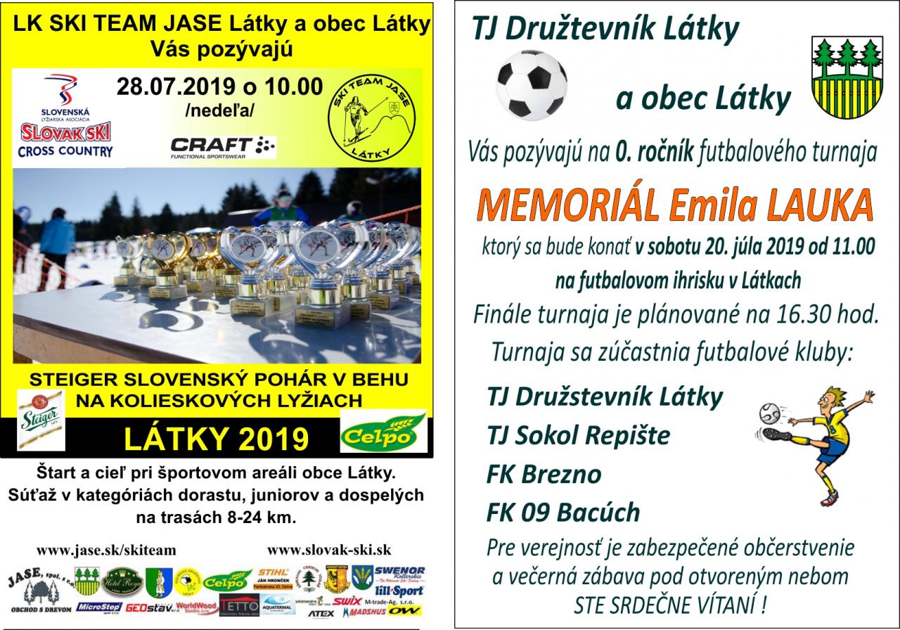 20.07.2019 V obci sa konal 0. ročník memoriálu Emila Lauka. Na turnaji sa zúčastnili 4 družstvá: TJ Družstevník Látky TJ Sokol Repište FK Brezno FK 09 Bacúch